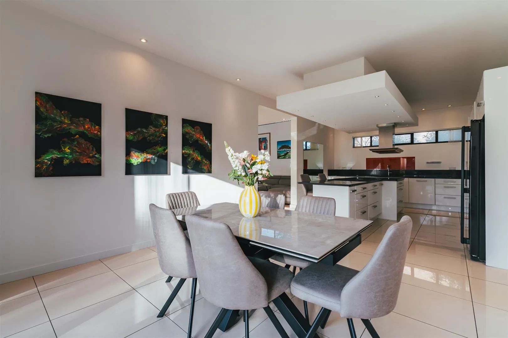 A wonderful reception room with a feature double-height ceiling. Having recessed lighting, TV/aerial point and porcelain tiled flooring with under floor heating. A sliding aluminium door with a double glazed panel and matching side panels opens to the front of the property. A wide opening leads into the dining kitchen.