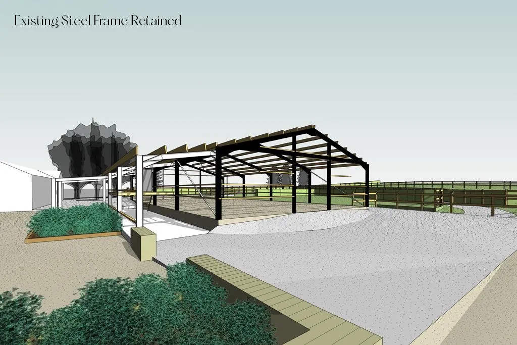 Forming part of Gooseberry Farm’s current equestrian amenities, the indoor schooling arena (steel barn) would be transformed into a superb detached four en-suite bedroomed home. The plans include a substantial driveway for parking and an access road leading to a sliding electric gate opening to Main Road.