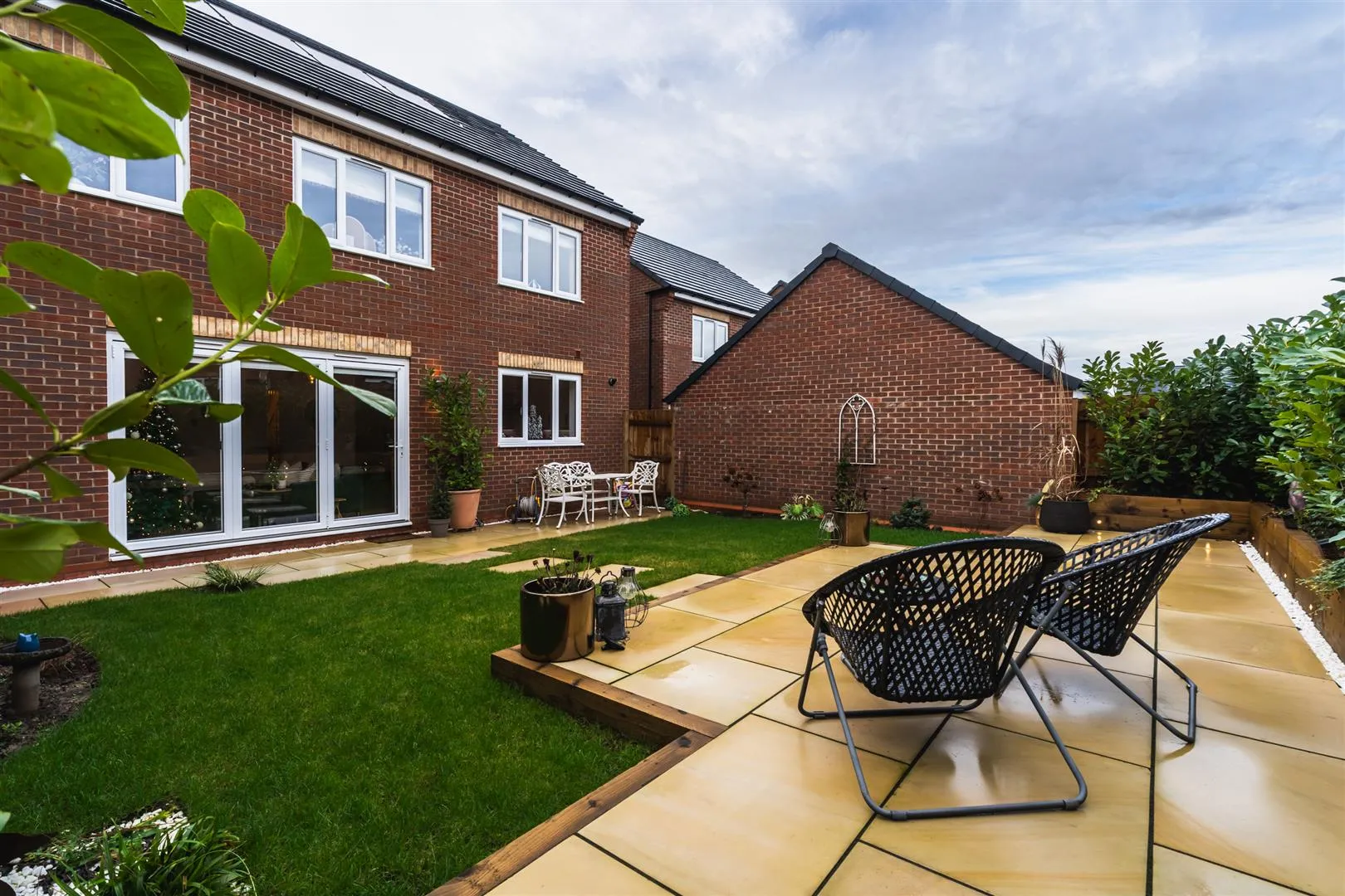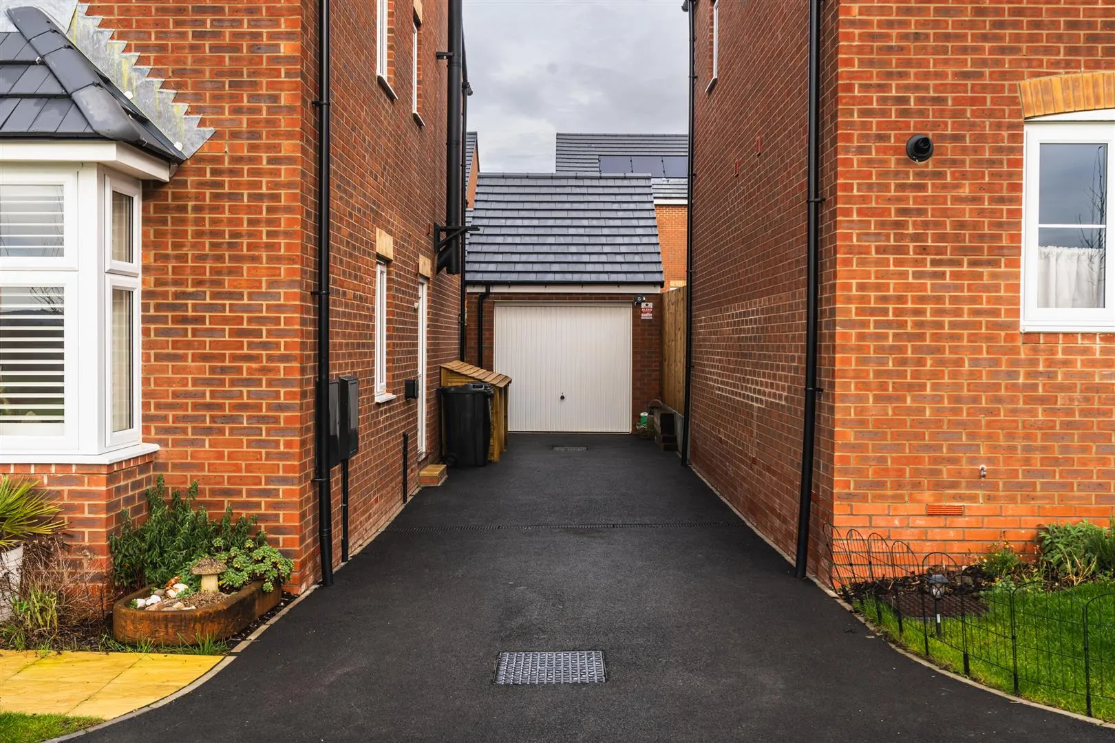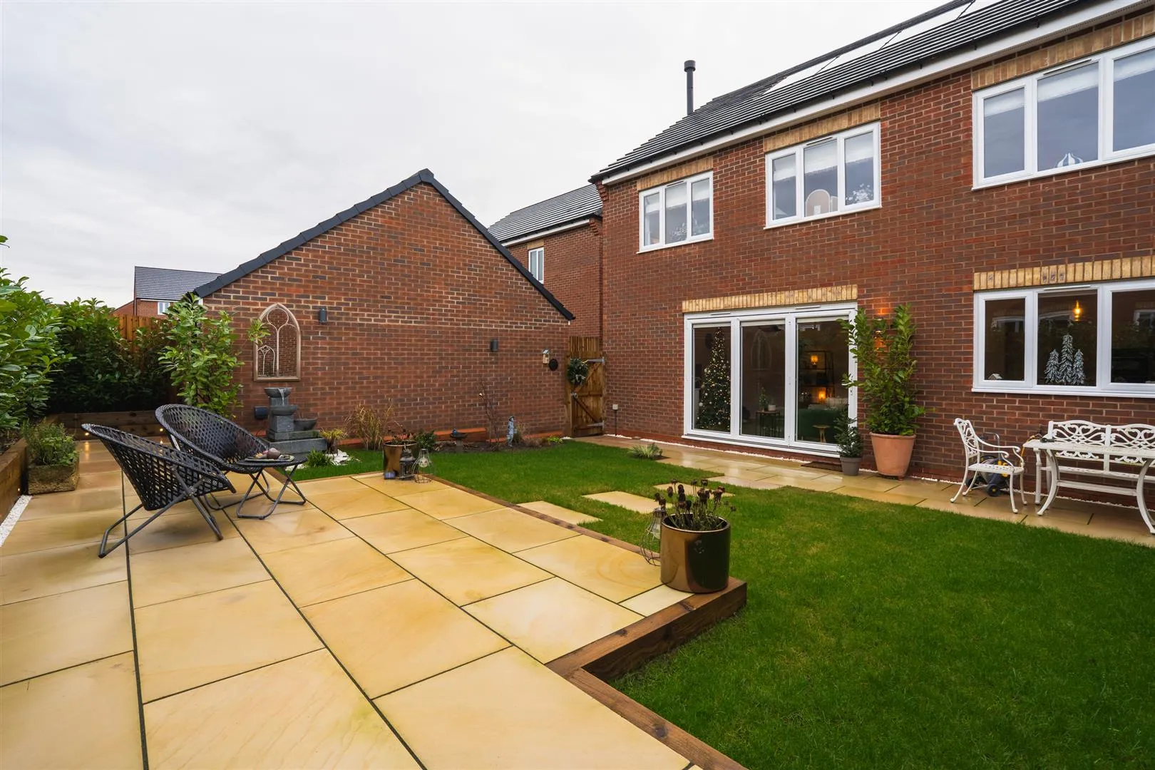 To the right hand side of the property is a drive with parking for three vehicles and an electric vehicle charging point. Access can be gained to the utility room and the single garage. A timber pedestrian gate opens to the rear of the property.
