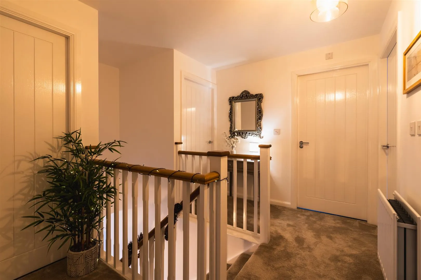 Having a pendant light point and a central heating radiator. Access can be gained to eaves storage. Timber doors open to bedroom 4, family bathroom, bedroom 3, bedroom 2, storage cupboard and master bedroom.
