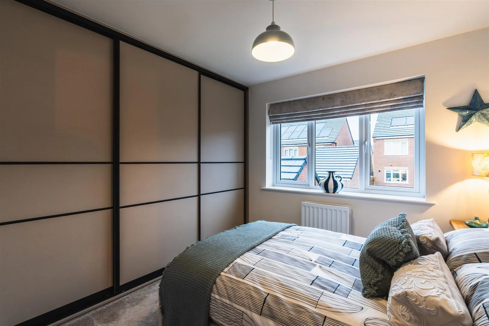 A further double bedroom with a rear facing UPVC double glazed window, pendant light point and a central heating radiator. Fitted furniture includes short hanging and shelving.