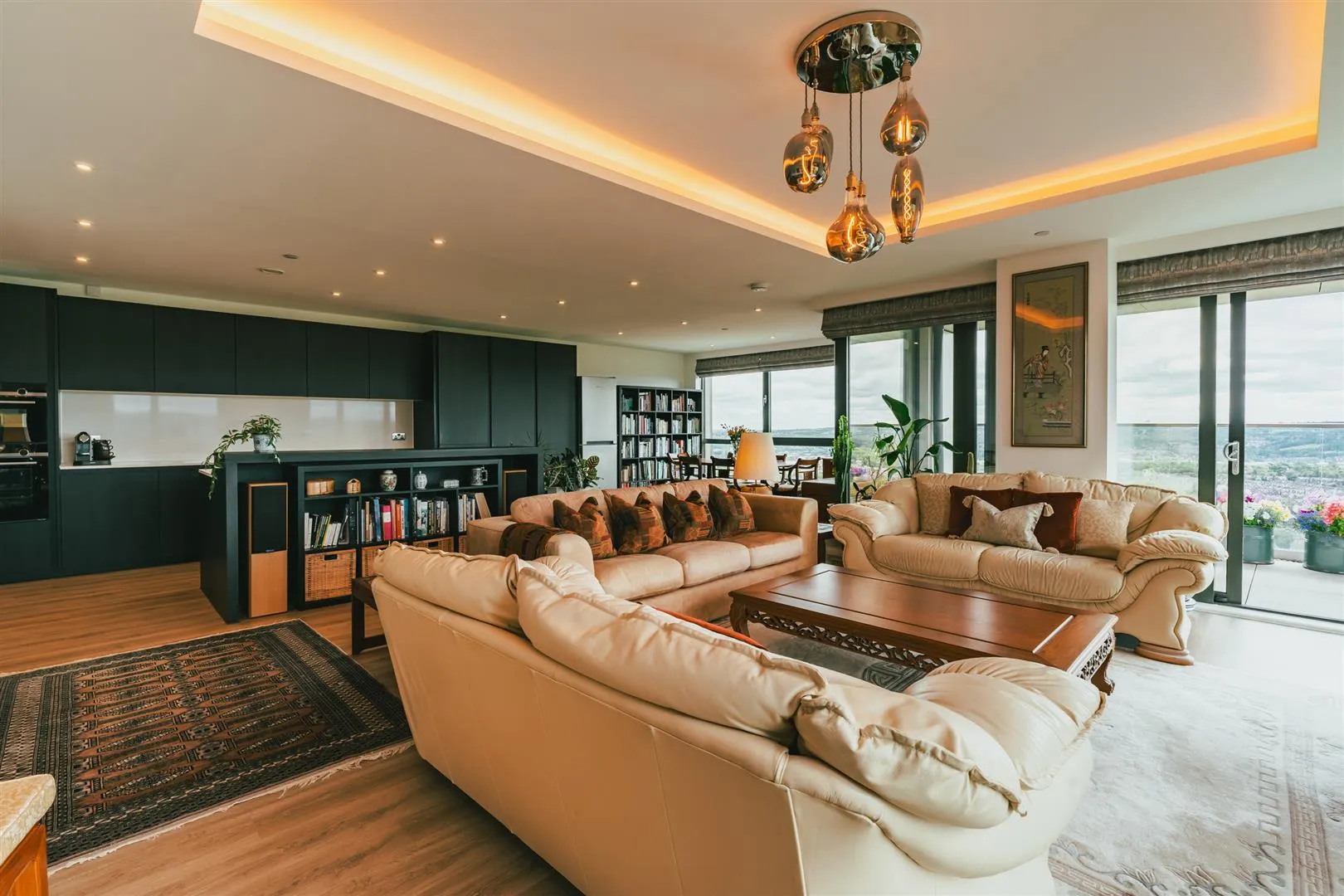 The entrance hallway leads into a stunning open plan kitchen, dining area and lounge with panoramic views over Sheffield.