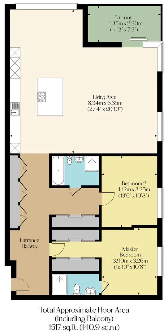 The property briefly comprises on the eleventh floor: Entrance hallway, master bedroom, master en-suite shower room, family bathroom, bedroom two, utility cupboard, two storage cupboards, kitchen, dining area, lounge and balcony.