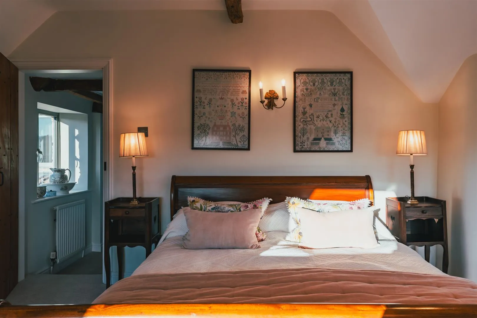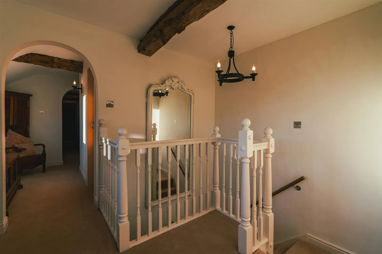 Offering the potential to be used as an independent suite, the inner landing has a side facing aluminium double glazed window, exposed timber beams, recessed lighting and a central heating radiator. Oak doors open to the family bathroom and bedroom 2.