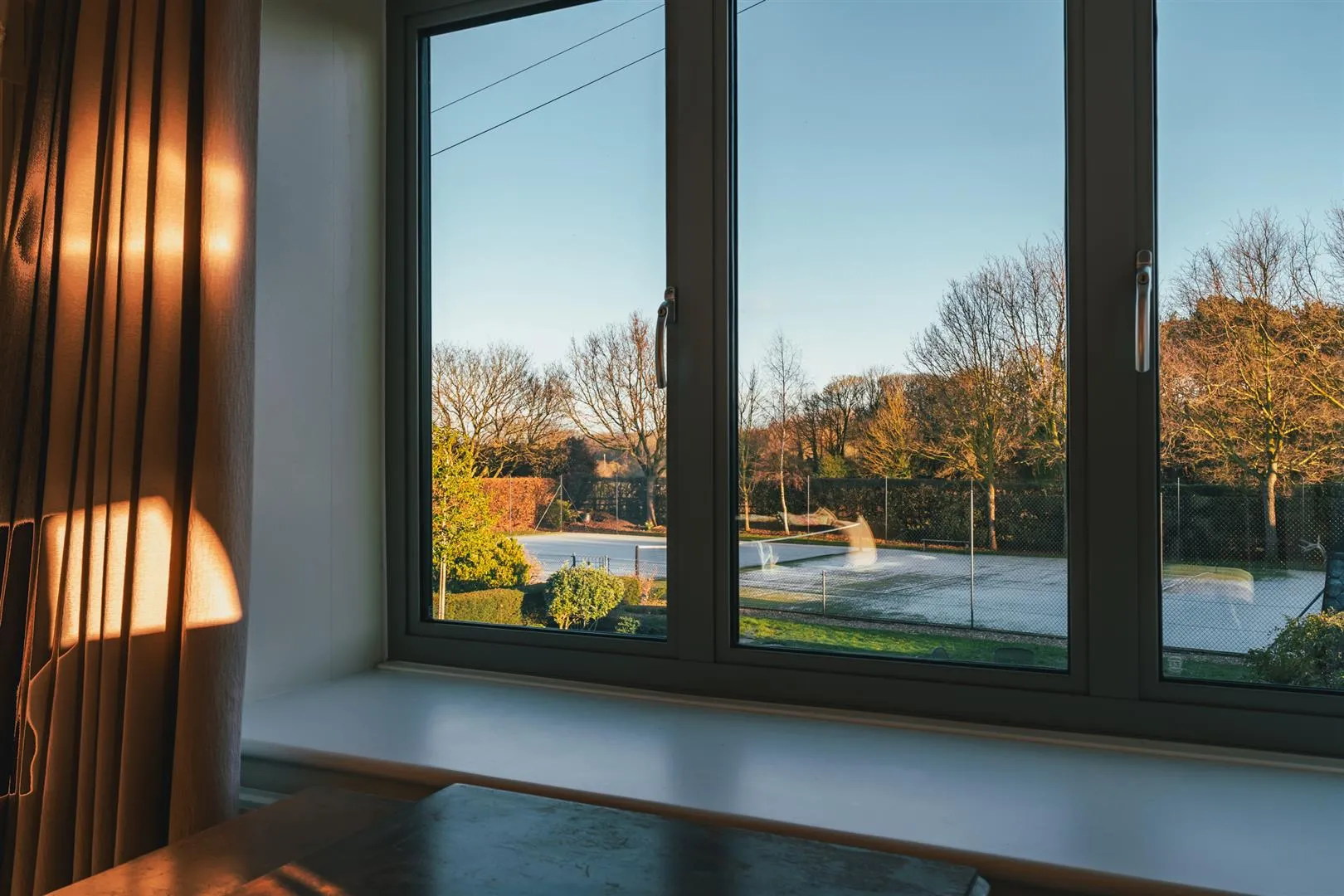 Beyond the patio is a garden that is mainly laid to lawn with mature trees and well-stocked, meticulously planted borders containing a variety of trees, shrubs and flowers. A timber gate opens to the lane. A stepping stone path meanders to the tennis court and kitchen garden.
