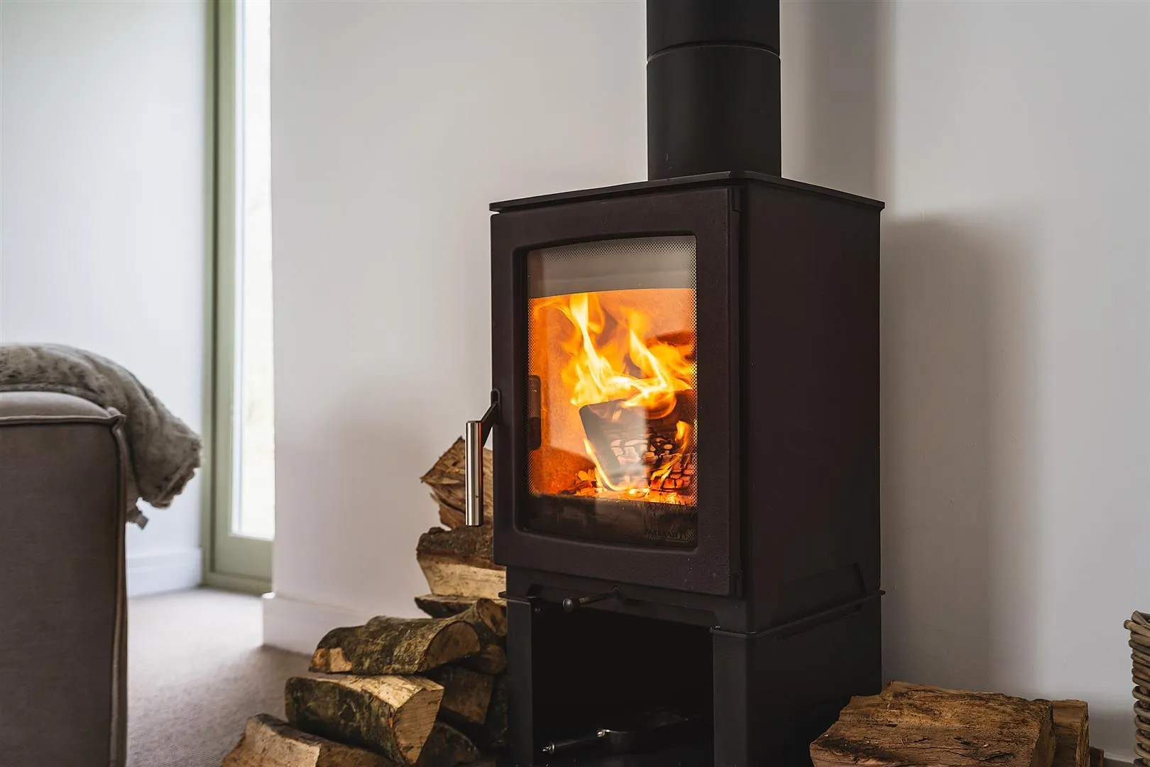 Serving as the heart of the home is the beautiful dining kitchen, which showcases a log burner, granite work surfaces and a range of integrated appliances by AEG and CDA. A generously proportioned lounge is ideal for relaxing and also boasts a log burner, perfect for cosy nights at home. The dining kitchen and lounge have fully opening windows that double as doors, allowing seamless transitions between the home and its outdoor spaces. Completing the ground floor is a modern WC and a useful under-stairs storage cupboard.
