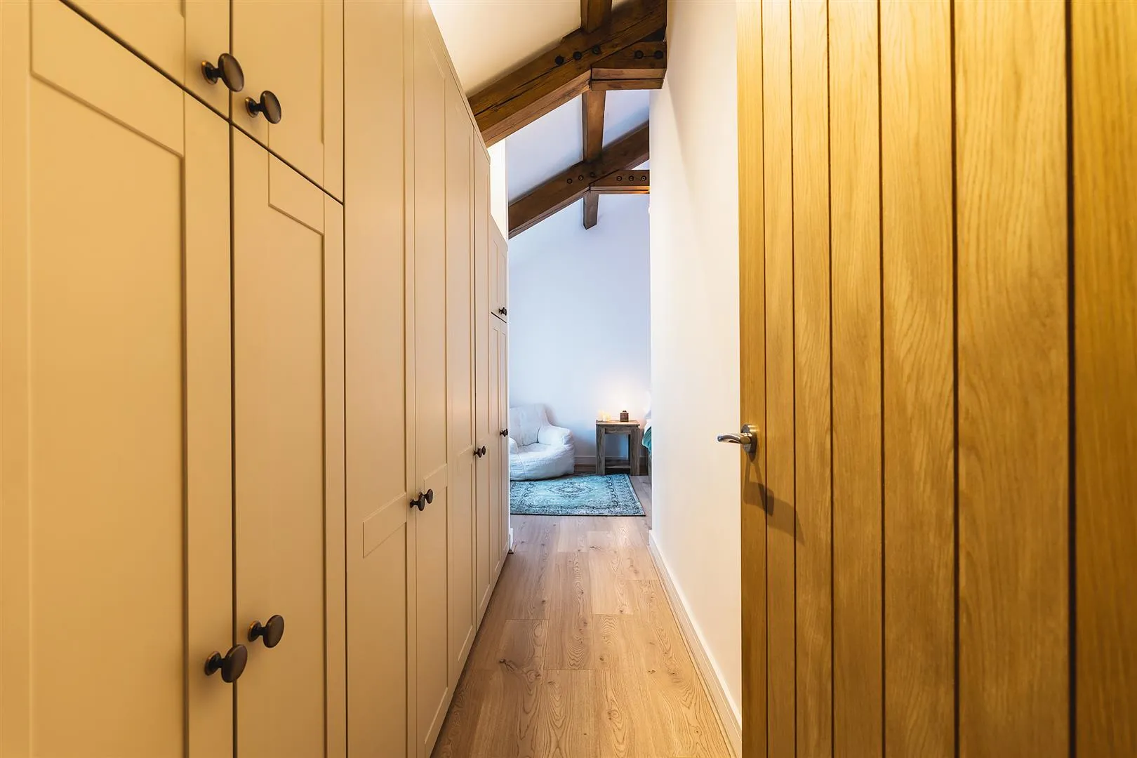 Having exposed timber beams, recessed light point, wall mounted light points, two clothes hanging rails and a fitted dresser with drawers.