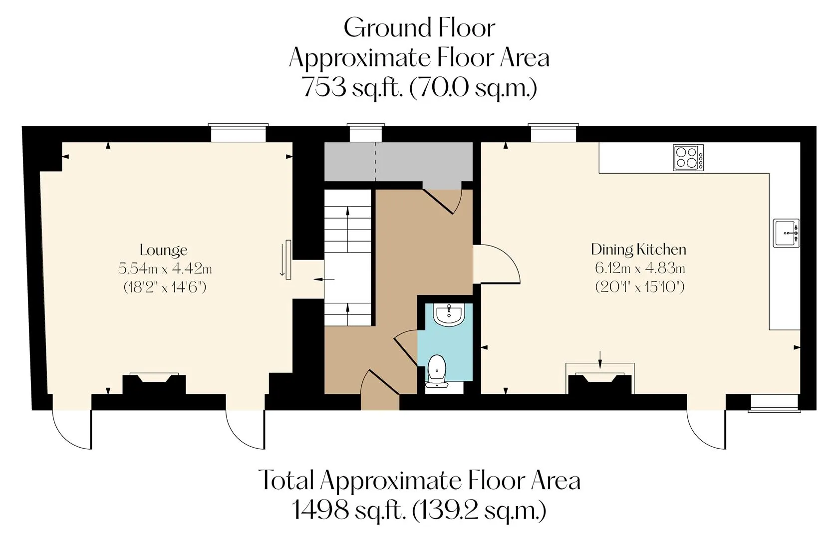 The property briefly comprises of on the ground floor: Entrance hall, WC, under-stairs storage cupboard, dining kitchen and lounge.