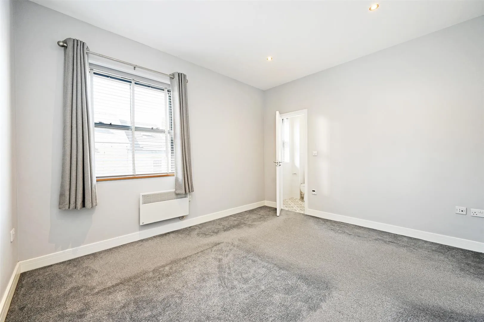 A good-sized double bedroom suite with a front facing aluminium double glazed sash window, recessed lighting, an electric heater and a TV/aerial/data point. A timber door opens to the bedroom 1 en-suite shower room.