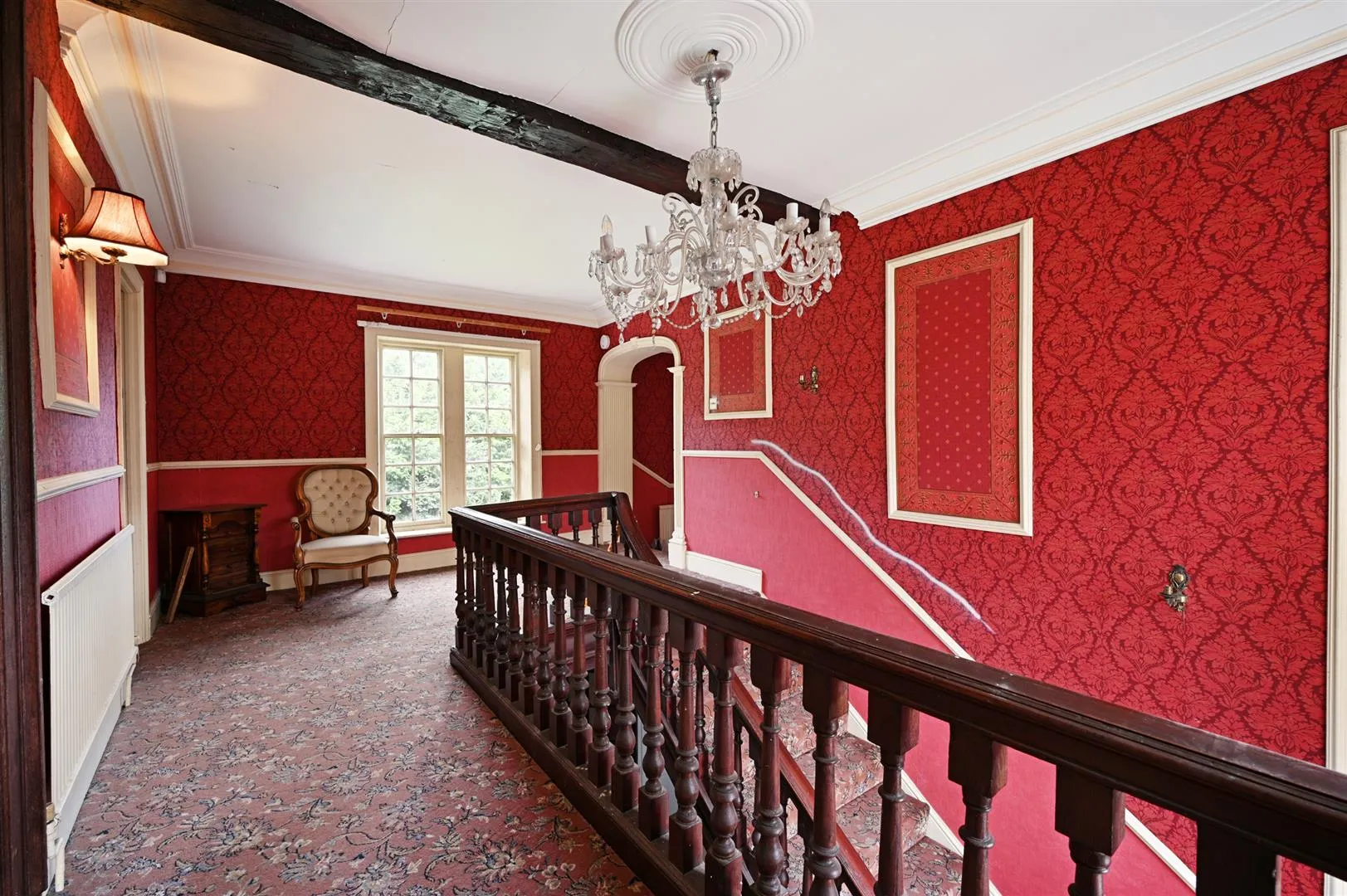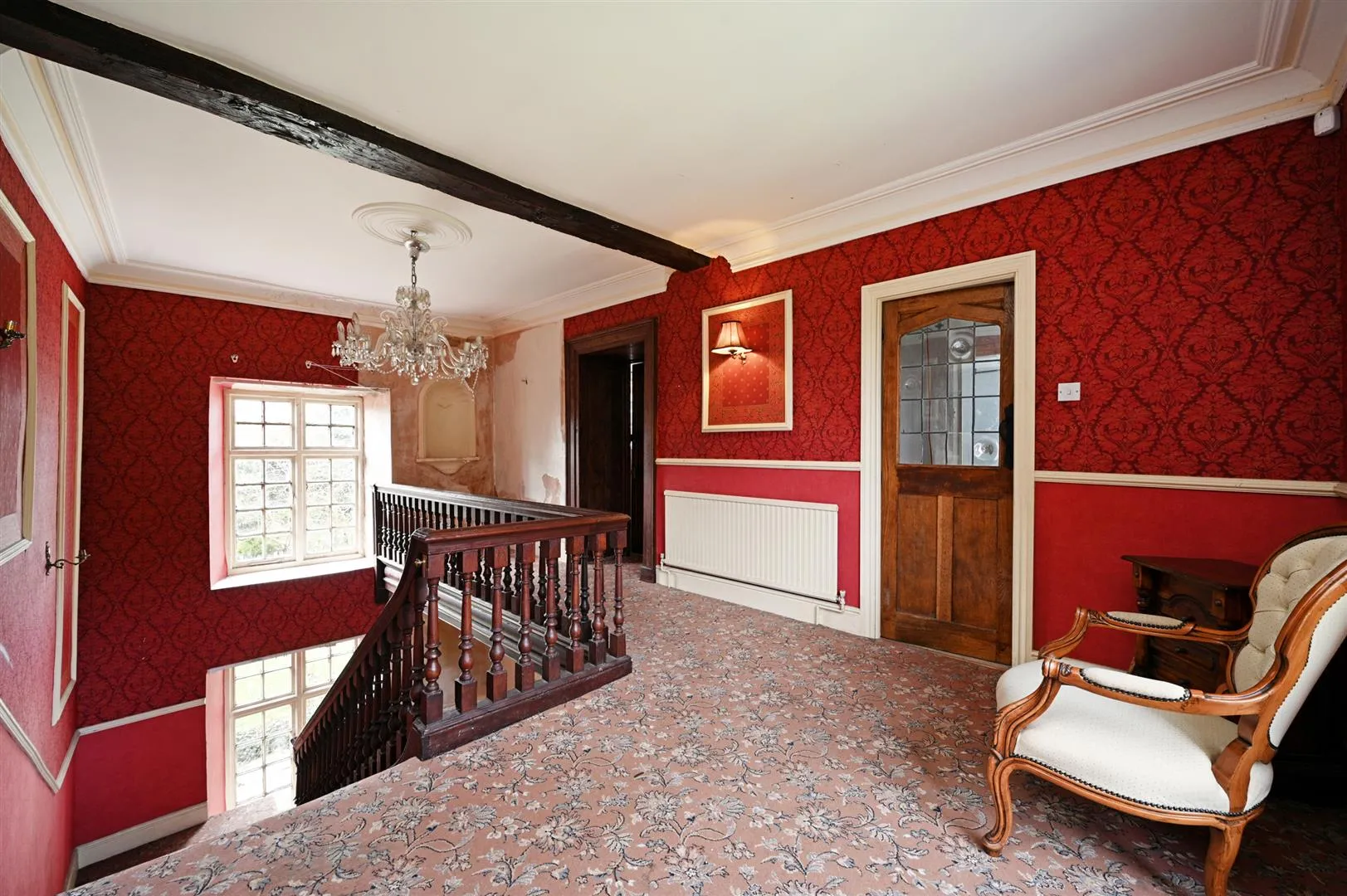 With front and rear facing timber glazed sash windows, coved ceiling, pendant light point with a decorative ceiling rose, exposed timber beams and a central heating radiator. A timber door opens to bedroom 1, a timber door with glazed panels opens to the bedroom 4 entrance and an opening gives access to the inner landing.