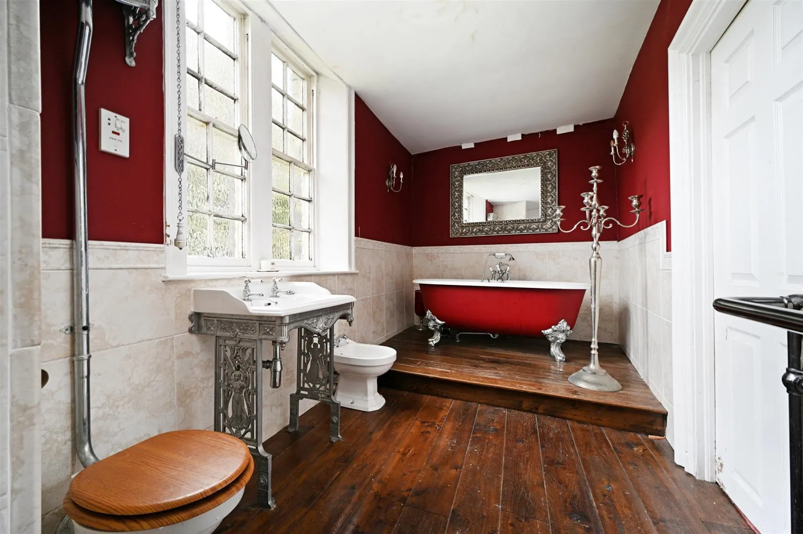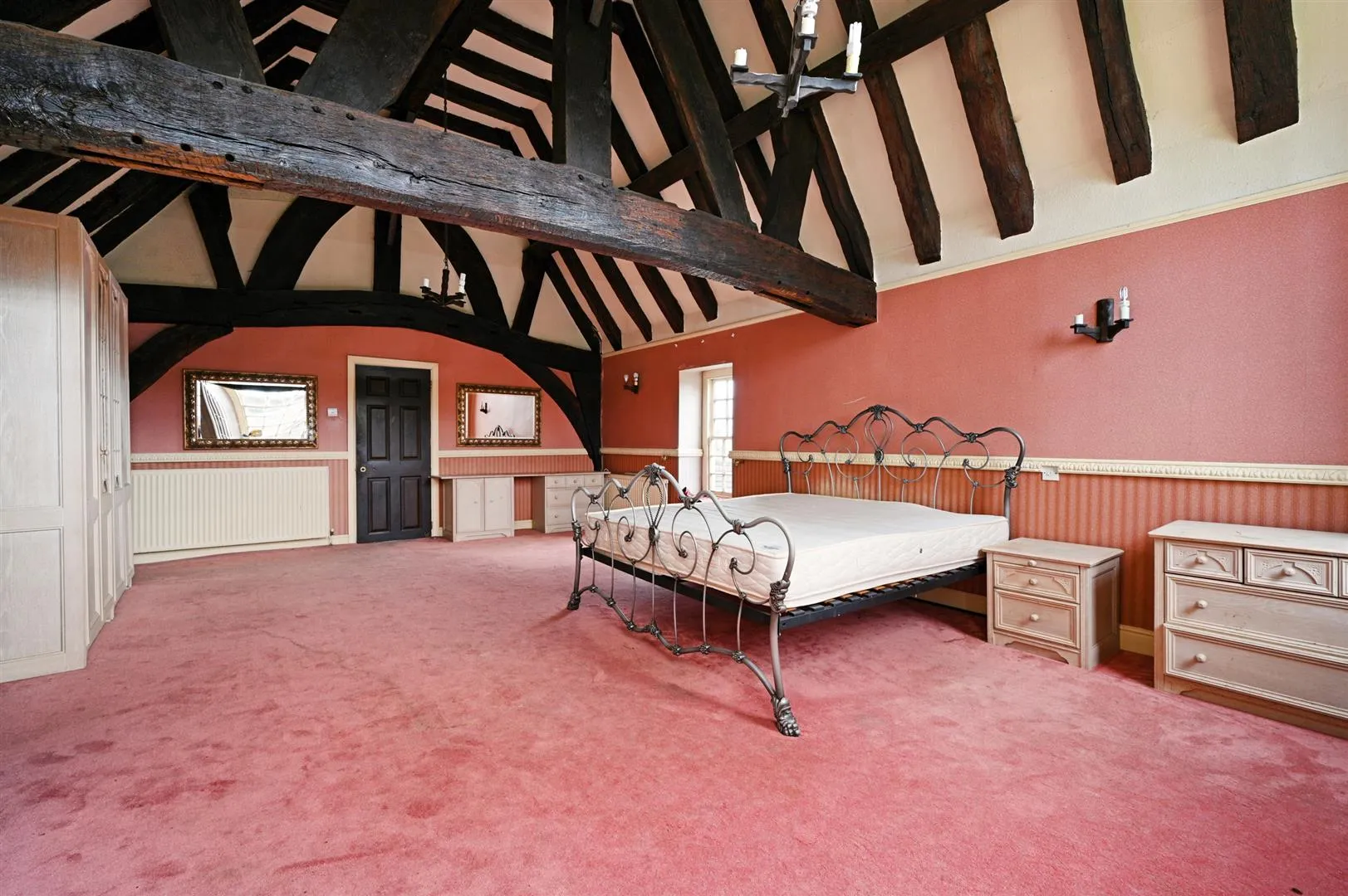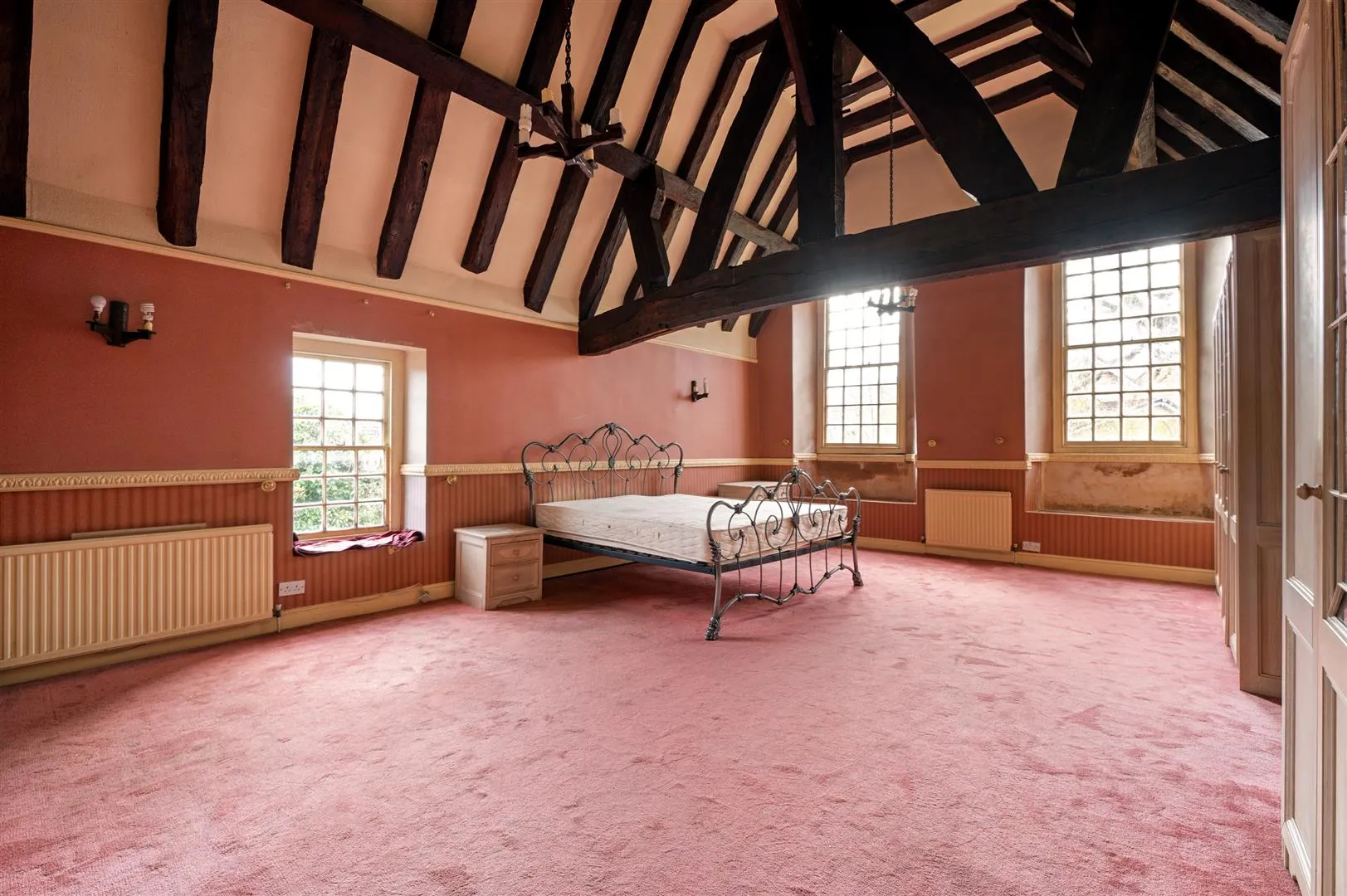 With a rear facing timber glazed sash window, coved ceiling, wall mounted light point, exposed timber beam and a central heating radiator. Timber doors open to bedroom 3, bedroom 2 and the family bathroom.
