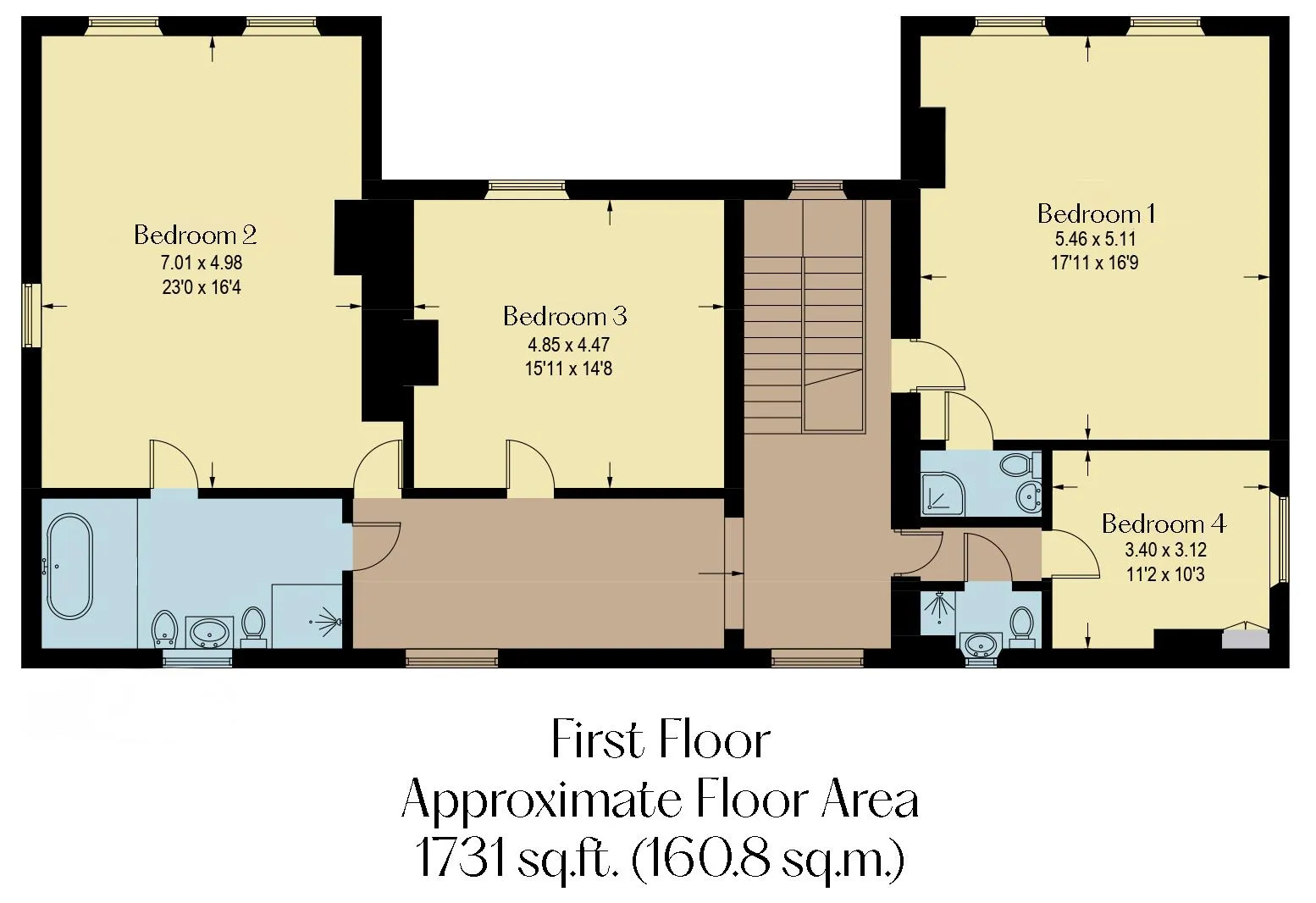 On the first floor: Landing, bedroom 1, bedroom 1 en-suite shower room, bedroom 4 entrance, bedroom 4 en-suite shower room, bedroom 4, inner landing, bedroom 3, bedroom 2 and family bathroom.