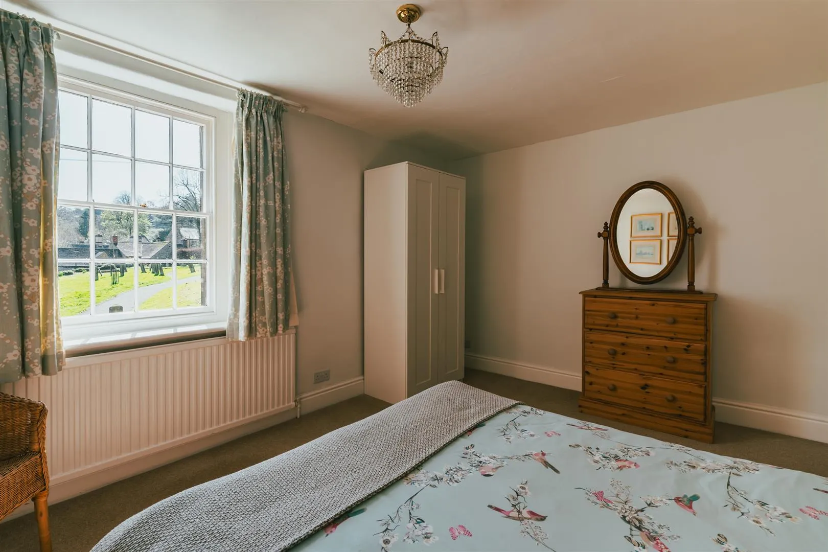 A double bedroom with a front facing timber glazed window, pendant light point, central heating radiator and a TV/aerial point.