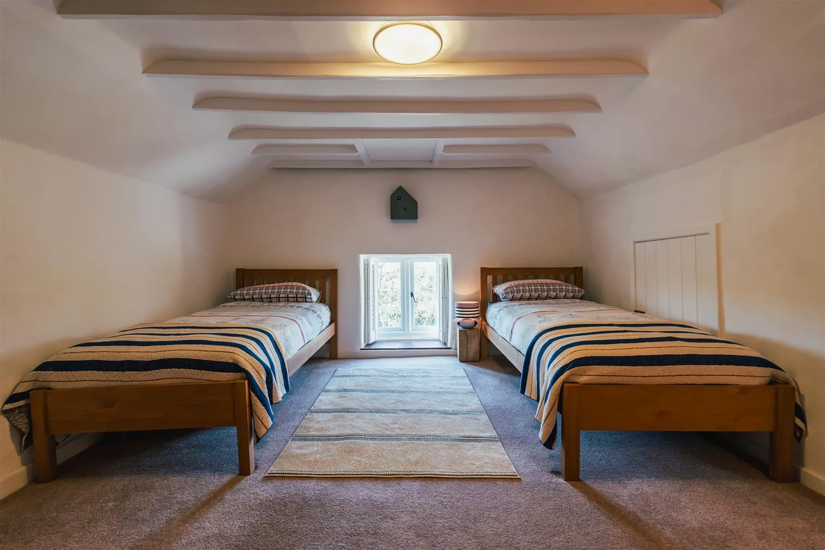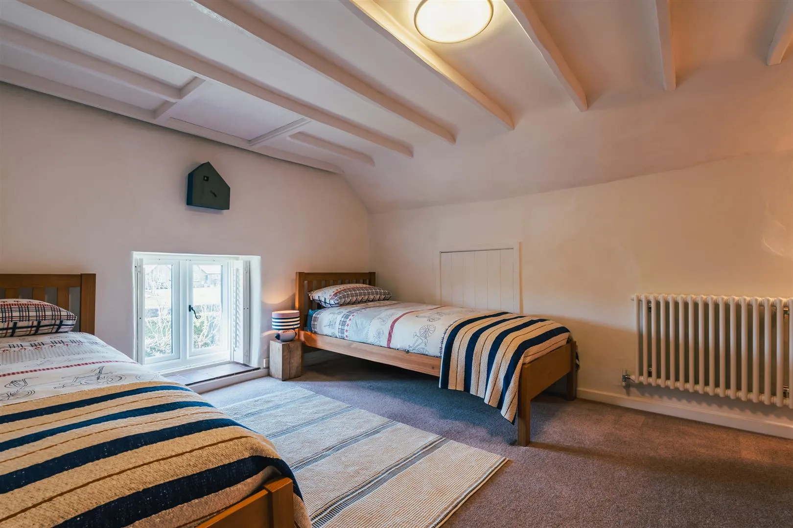 With a front facing UPVC double glazed window, flush light point and a central heating radiator. A timber door opens to bedroom 4 and timber doors give access to eaves storage.