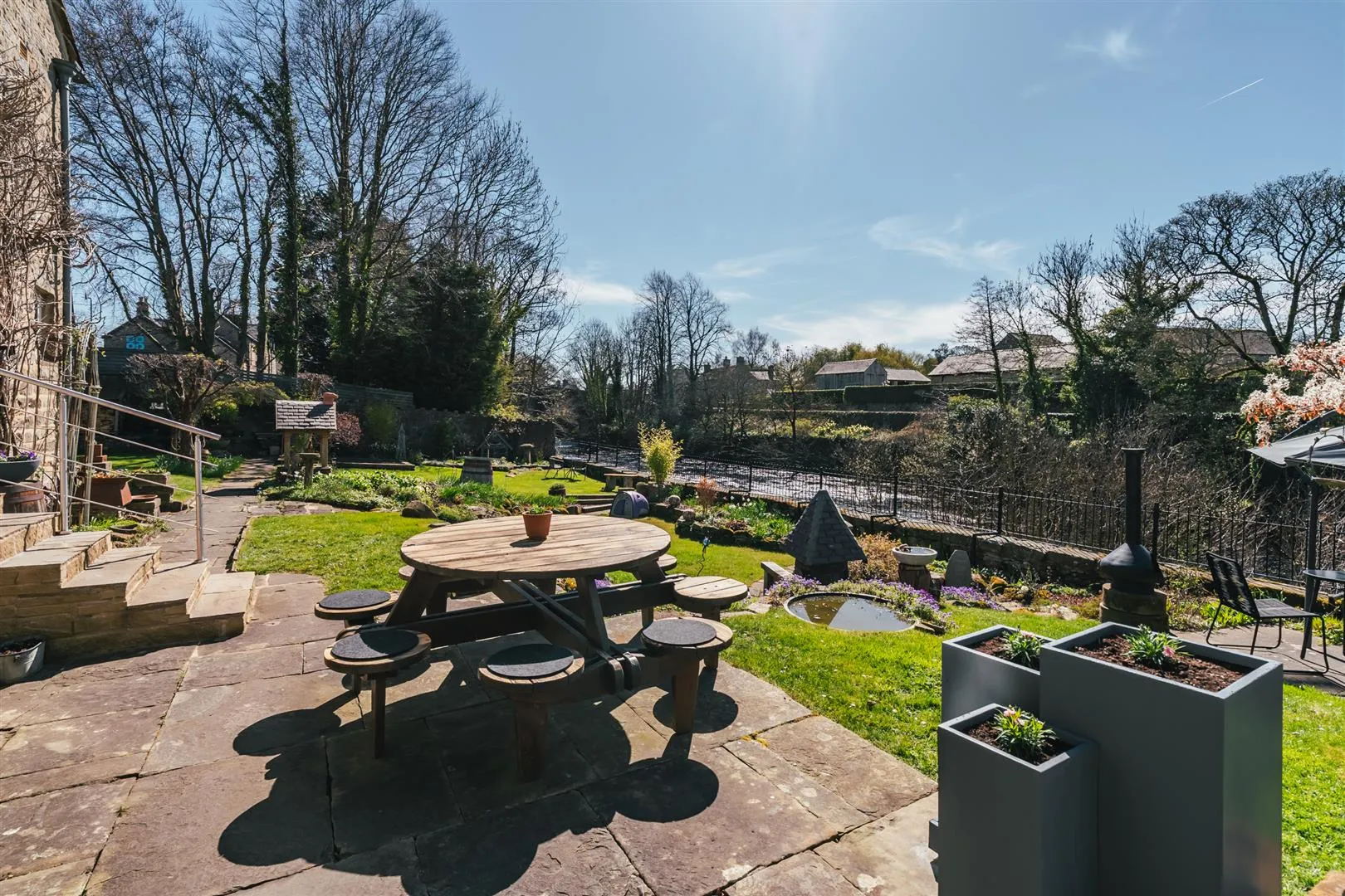 The garden is fabulous, wrapping around the rear of the property. There is an array of mature trees, plants, raised flowerbeds and multiple areas for seating, all whilst overlooking the River Derwent. Access can be gained to the snug.